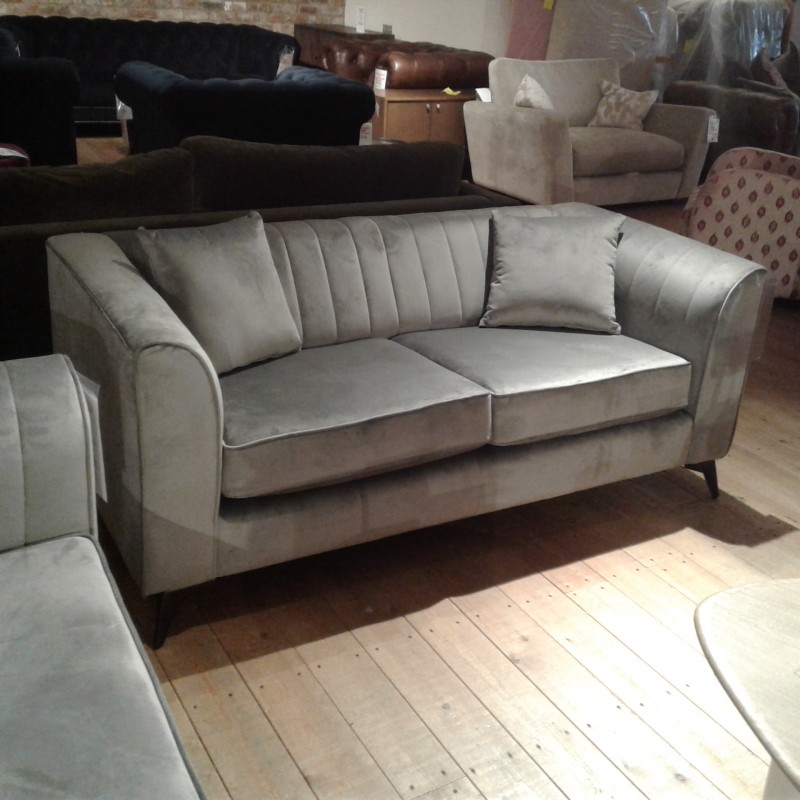 Etta two seater sofa in grey velvet. Special purchase, one only to clear