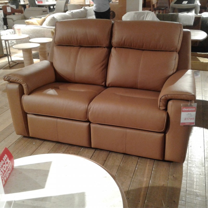 G Plan Ellis two seater sofa in tan leather. Ex display, one only available to clear