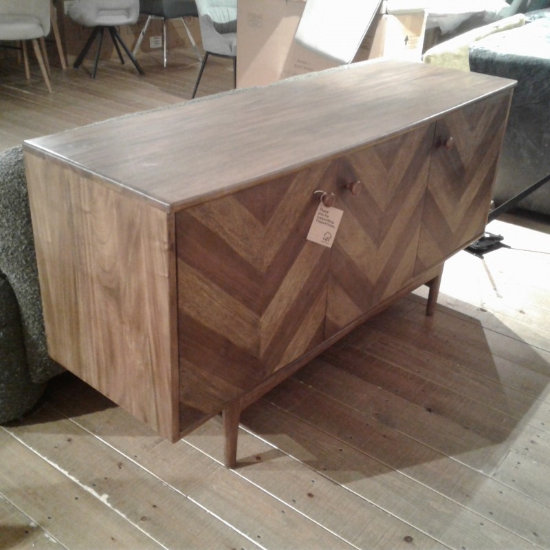 Lockley three door sideboard in chevron Sanan wood. One only to clear
