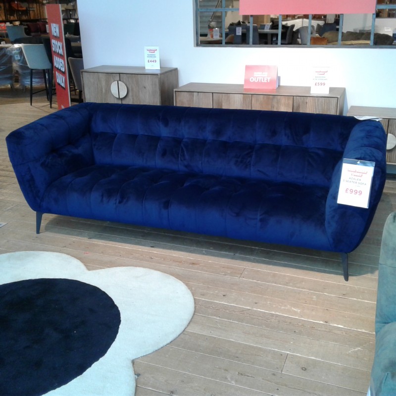 Azalea three seater sofa in blue velvet. Cancelled order, one only to clear