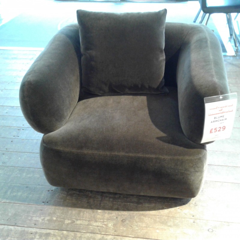 Blume armchair in chocolate brown velvet (two other colours available) from stock