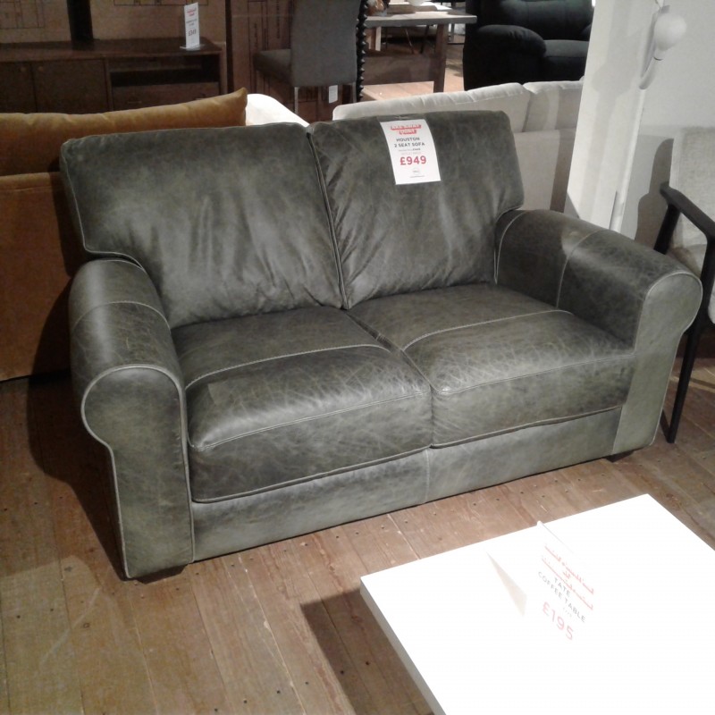 Houston two seater sofa in dark green leather. One only to clear