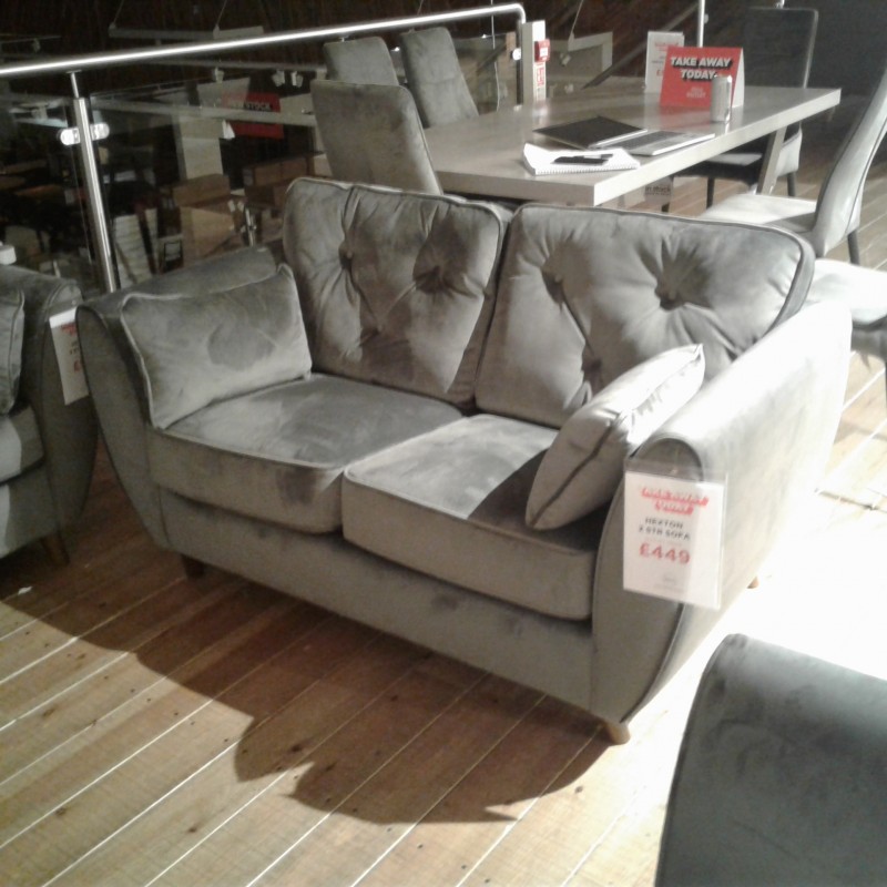 Hexton 2str sofa in grey velvet. Special purchase one only to clear
