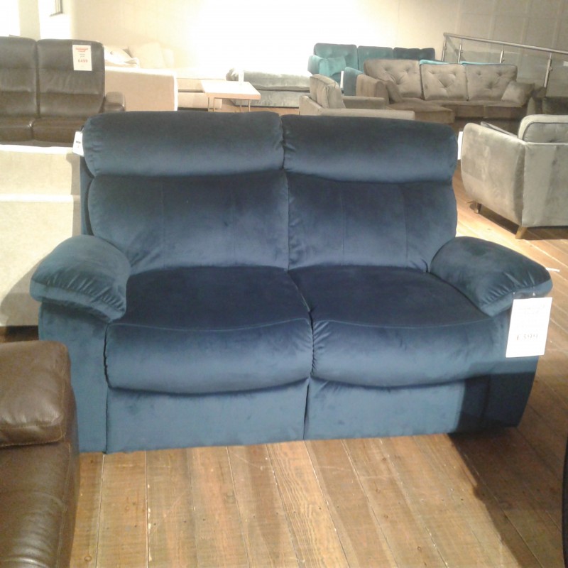 Silsden two seater sofa in blue velvet. Special purchase, one only to clear