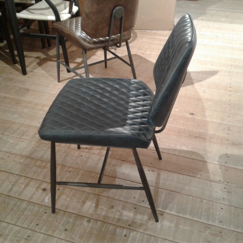 Hawley dining chair in blue faux leather. Limited quantity available to clear from stock