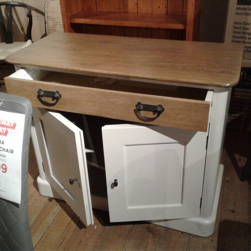 Mara two door, one drawer sideboard in Mango wood and painted finish. One only available to clear