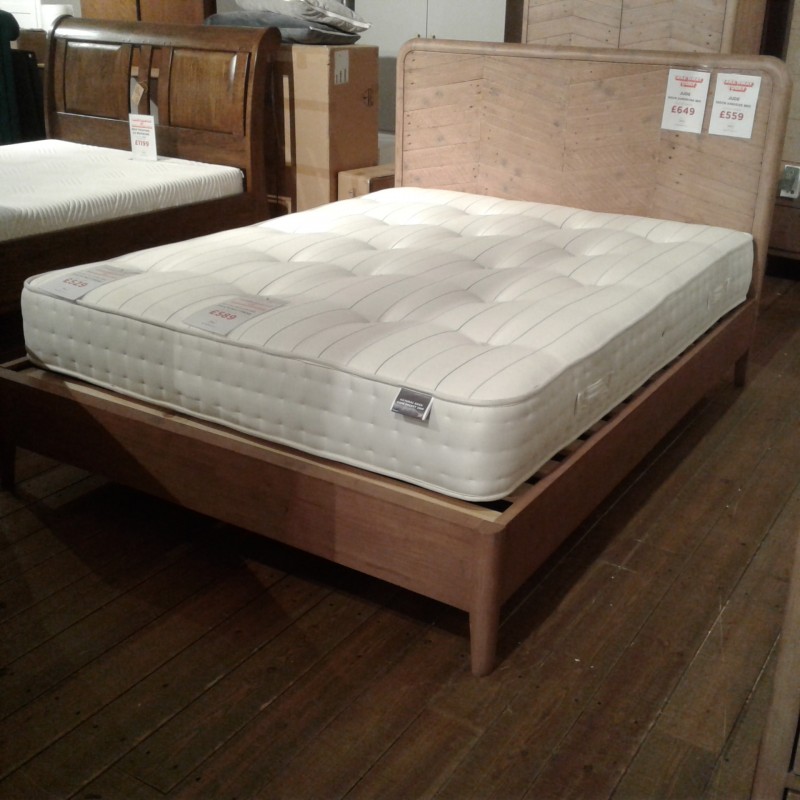 Jude king size (to accommodate 150 x 200cm mattress) bed frame in reclaimed wood. Special purchase, very limited quantity available to clear at this price. New boxed stock