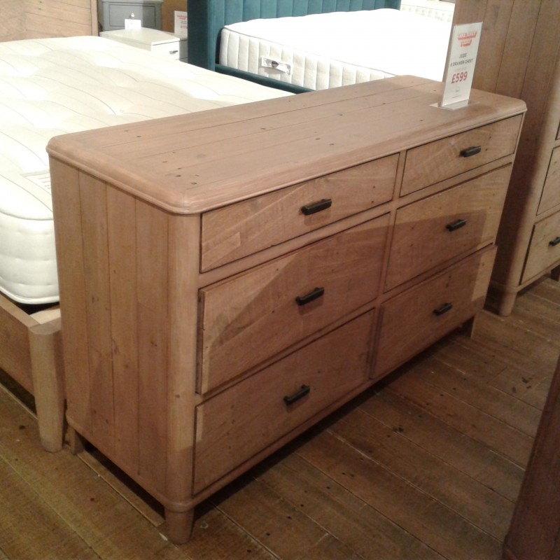 Jude six drawer wide chest in reclaimed wood. Special purchase. Very limited quantity available at this price. New boxed stock