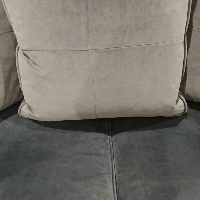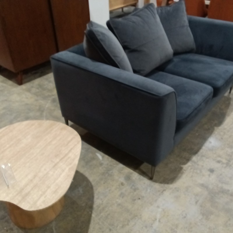 Blue sofa, grey cushions, hence price